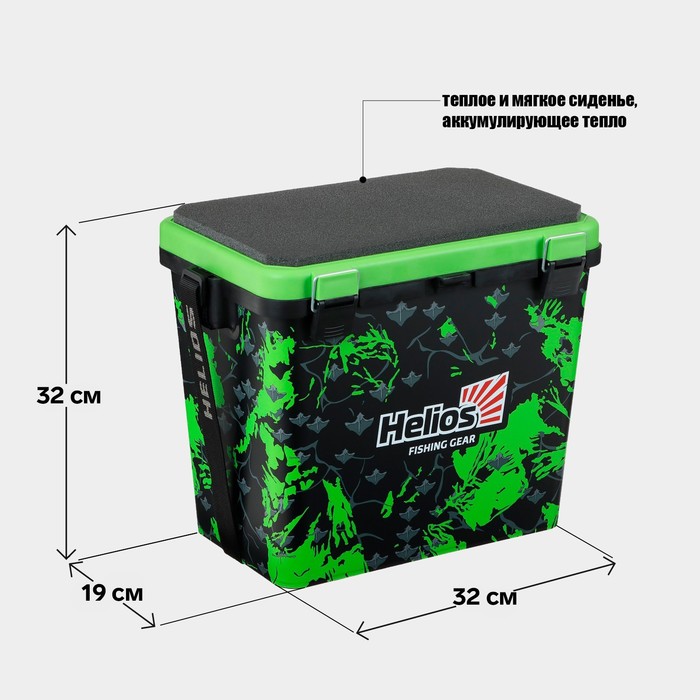 Ящик зимний рыболовный торговой марки Helios, изготовленный из ударопрочного, морозостойкого и в то же время легкого пластика, обеспечивает надежное хранение и транспортировку рыболовных снастей.