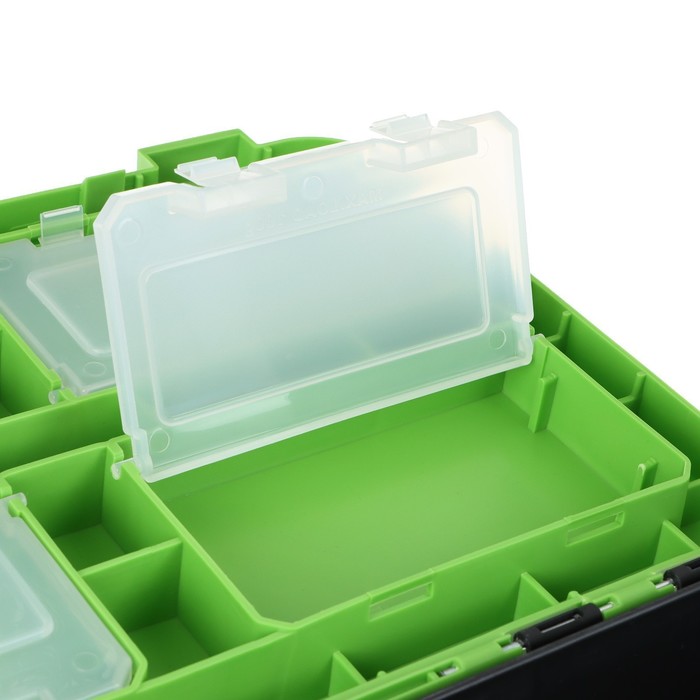 Рыболовный ящик выгодно отличается среди аналогичных ярким и современным дизайном. Благодаря объему 19 литров, ящик вместит очень много полезных снастей для рыбалки. Дополнительная проставка с 2 отсеками и съемными перегородками позволяет разместить небольшие удочки и другие снасти.