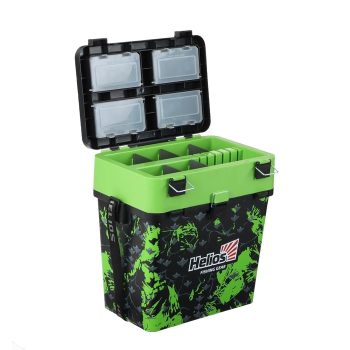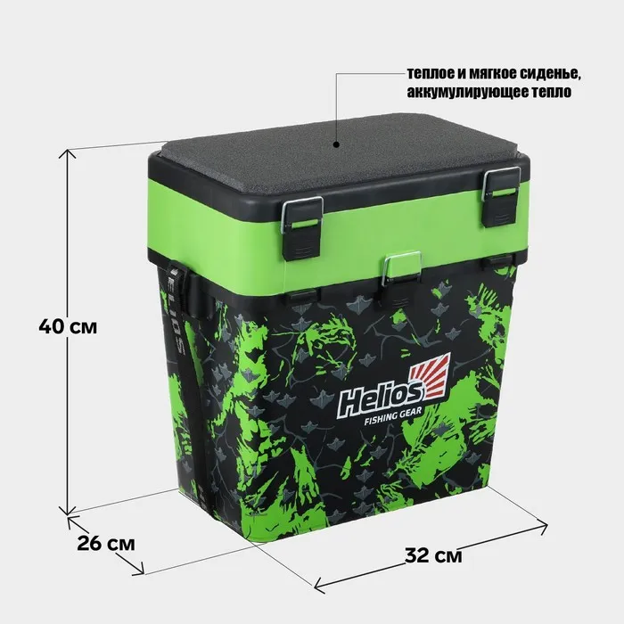 Ящик зимний рыболовный торговой марки Helios, изготовленный из ударопрочного, морозостойкого и в то же время легкого пластика, обеспечивает надежное хранение и транспортировку рыболовных снастей.