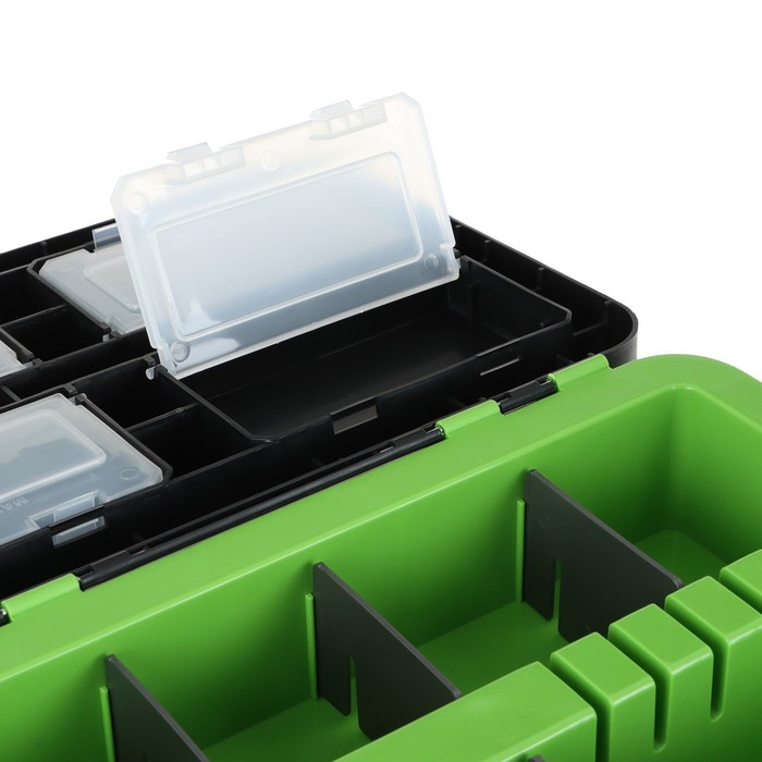 Рыболовный ящик выгодно отличается среди аналогичных ярким и современным дизайном. Благодаря объему 19 литров, ящик вместит очень много полезных снастей для рыбалки. Дополнительная проставка с 2 отсеками и съемными перегородками позволяет разместить небольшие удочки и другие снасти.