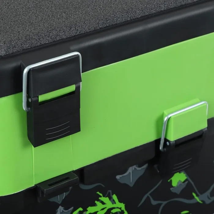 Удобные и надежные замки гарантируют плотное прилегание крышки к основному отсеку ящика. Пластиковый каркас выдерживает низкие температуры до -40С, не пропускает и не впитывает воду.