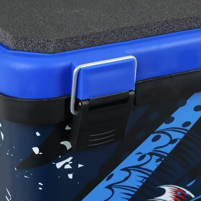 Удобные и надежные замки гарантируют плотное прилегание крышки к основному отсеку ящика. Пластиковый каркас выдерживает низкие температуры до -40С, не пропускает и не впитывает воду.