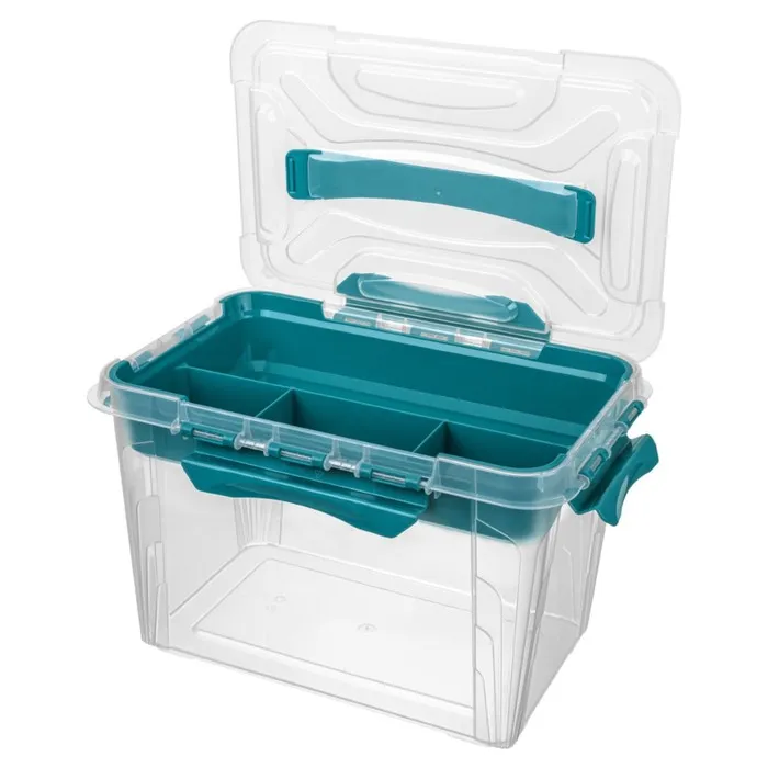Ящик универсальный GRAND BOX, цвет голубой, с замками и вставкой-органайзером, 6,65 л
