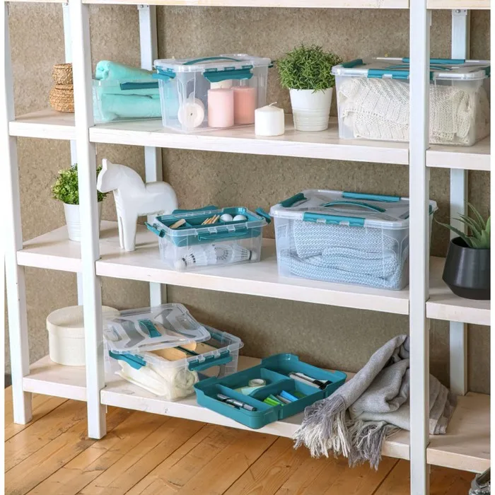 Ящик универсальный GRAND BOX, цвет голубой, с замками и вставкой-органайзером, 6,65 л — Характеристики