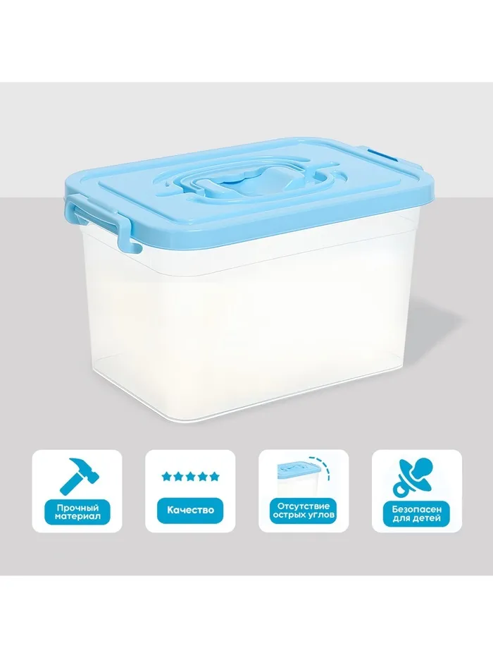 Контейнер для хранения с крышкой, 6,5 л, цвет голубой