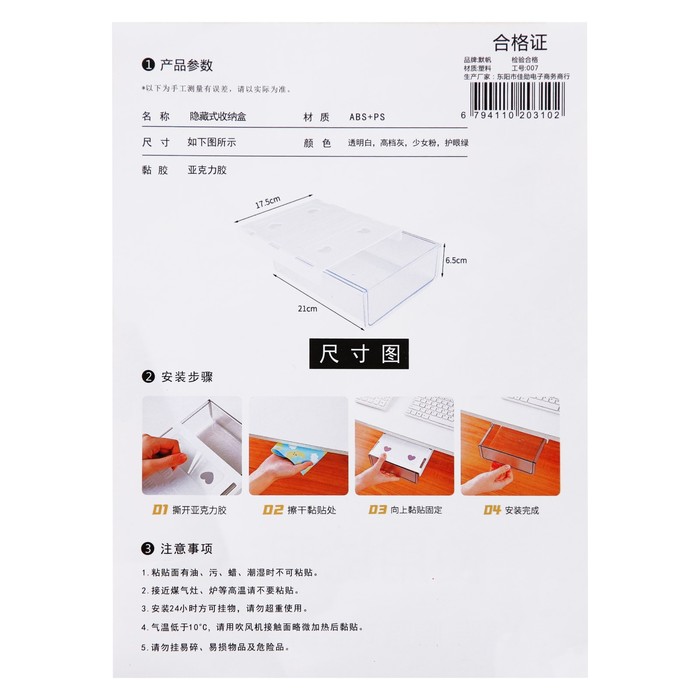 Ящик выдвижной для канцелярских предметов, 210×175×65 мм, прозрачный — Характеристики