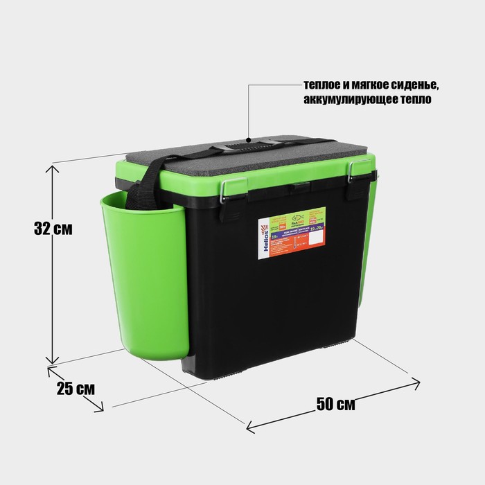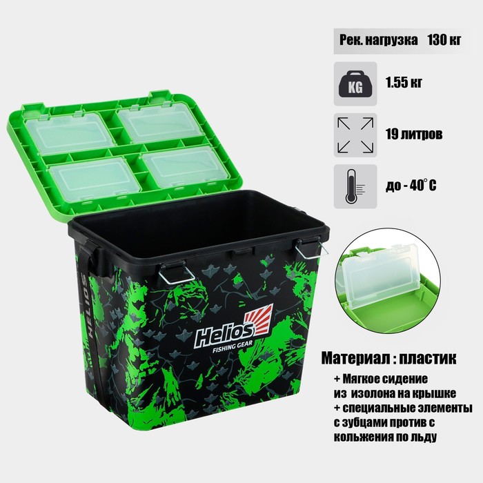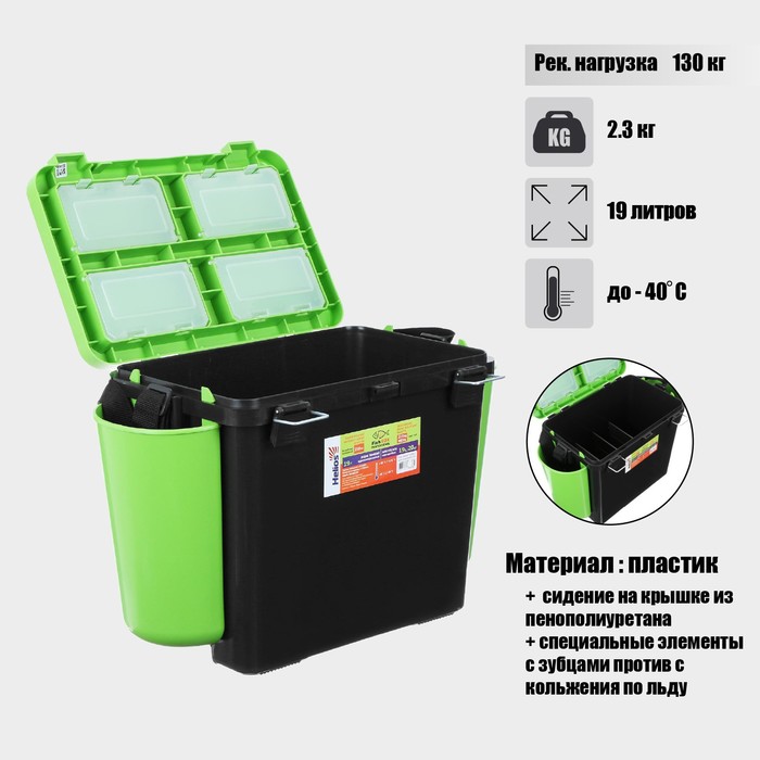 Ящик зимний Helios FishBox 19 л, односекционный, зеленый — Характеристики