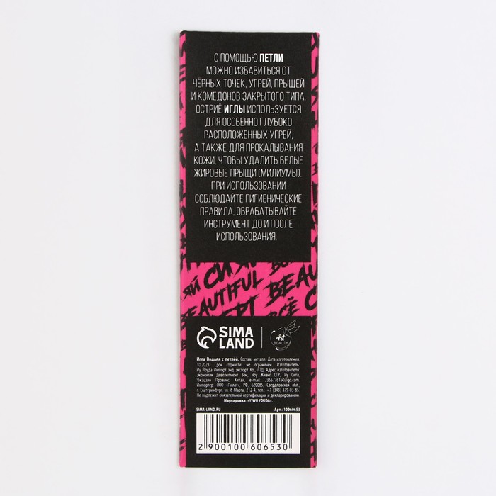 С помощью петли можно избавиться от черных точек, угрей, прыщей и комедонов закрытого типа. Остриё иглы используется для особенно глубоко расположенных угрей. Игла косметологическая - это ваш идеальный предмет в уходе за лицом. Качественный и прочный инструмент для механической чистки лица избавит проблемную кожу от несовершенств и подарит коже сияющий вид. Больше не нужно ждать записи к косметологу, ведь косметологическая игла - это идеальный выбор для тех, кто хочет заботиться о своей коже и очищать лицо в домашних условиях. Замени лишние траты на средство от прыщей, на косметологическую иглу и ты поймешь, что здоровая кожа без чёрных точек и постакне - это просто.