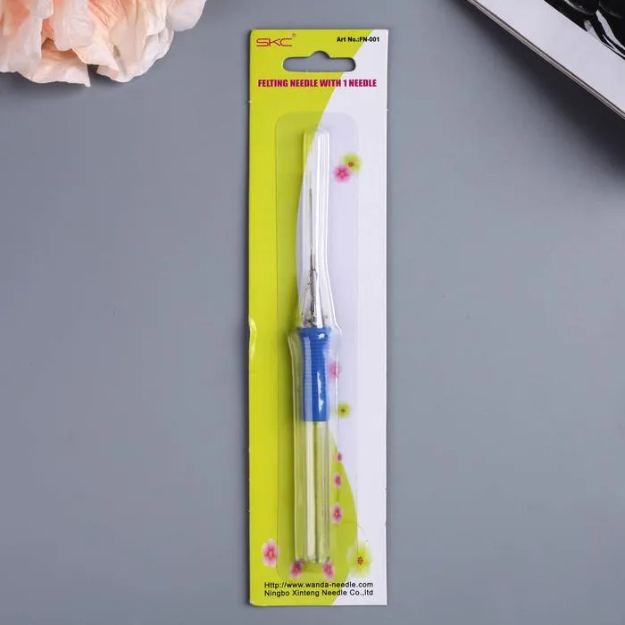 Удобная игла для валяния преимущественно предназначена для сухой техники. Она выполнена из закалённой стали, поэтому обладает хорошей упругостью и не гнётся во время работы. Ведь втыкая иголку в шерсть, насечки в нижней части зацепляют волокна шерсти и проталкивают их в нижние слои, благодаря чему и происходит сваливание шерстяных волокон.