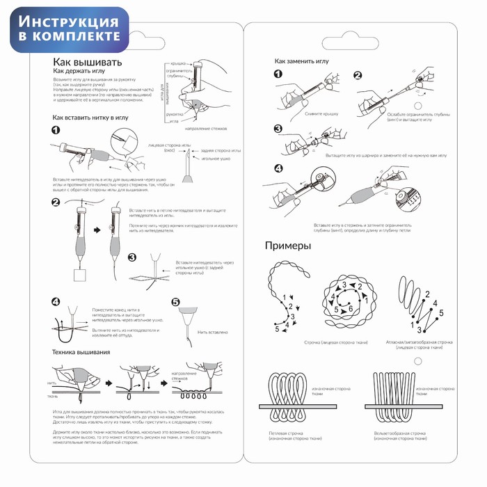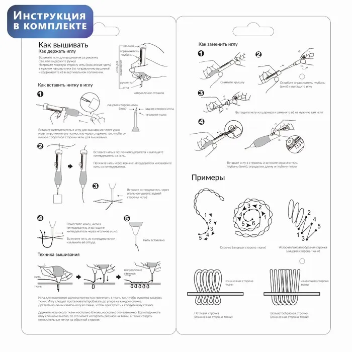 Прочность и эргономичность этих игл делают их универсальным выбором для создания ярких и насыщенных узоров. Белые и синие цветовые решения добавляют эстетики и помогают легко организовать рабочее пространство. Каждая деталь продумана для того, чтобы сделать ваше творчество максимально продуктивным и приятным.