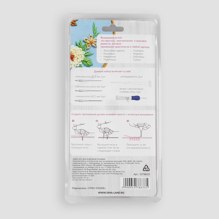 Представляем вашему вниманию идеального спутника для творческих проектов, который превратит процесс вышивания в истинное удовольствие. Эти иглы созданы специально для ковровой техники и станут незаменимым инструментом в руках как начинающих мастеров, так и профессионалов. Благодаря своим уникальным характеристикам — диаметру 1,3/1,6/2,2 мм и наличию удобных нитевдевателей — они обеспечивают безупречный комфорт при работе с различными материалами.
