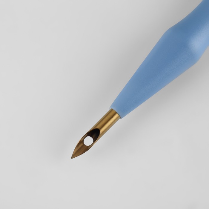 Игла для ковровой вышивки с нитевдевателем от Арт Узор включает ручку длиной 18,5 см и иглу диаметром 4,8 мм. Голубой цвет изделий помогает быстро находить инструмент среди материалов, а встроенный нитевдеватель облегчает заправку нитей, ускоряя подготовку к работе.