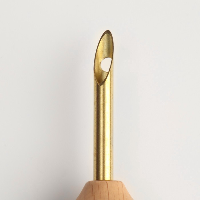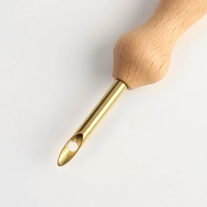 Золотая ковровая игла с нитевдевателем создана для комфортной работы в петлевой технике. Широкое ушко диаметром 5 мм легко пропускает толстые нитки, а удобный держатель снижает нагрузку на пальцы при длительной вышивке.