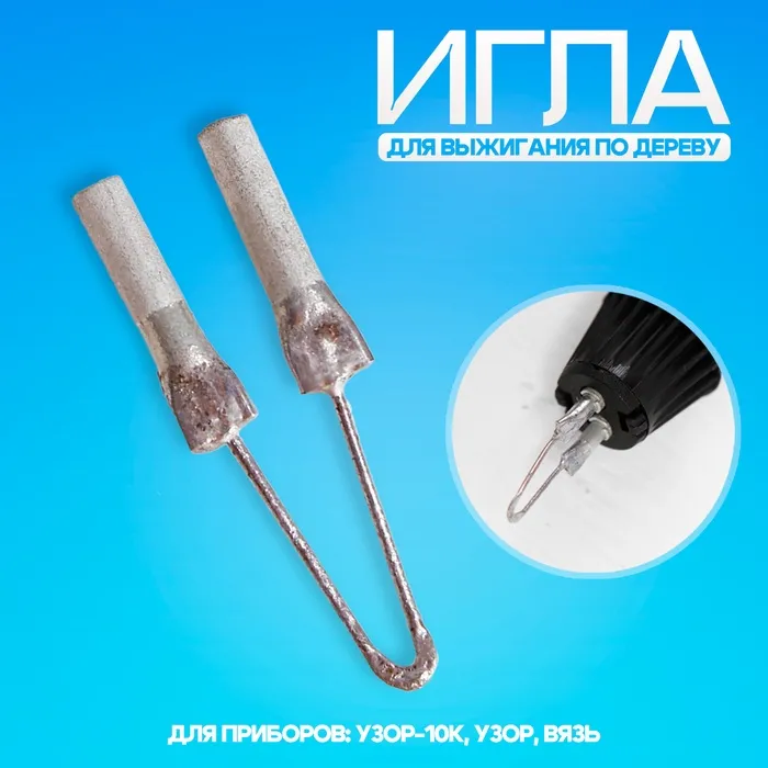 Сменная игла — деталь прибора для выжигания по дереву. Без неё электроприбором пользоваться нельзя. Игла подойдёт для следующих приборов: «Узор-10К», «Узор» и «Вязь».