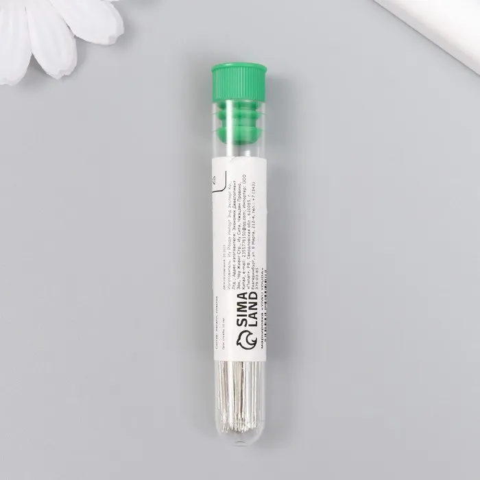 Иглы металл для бисера в стеклянной колбе тонкие набор 10 шт., d=0.45×100 мм, 1.5×1.5×14 см