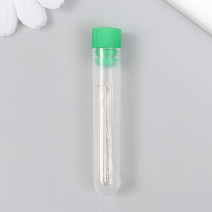 Иглы металл для бисера в стеклянной колбе тонкие набор 30 шт., d=0.6×120 мм, 1.5×1.5×14 см