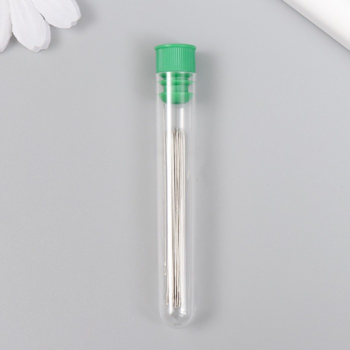 Иглы металл для бисера в стеклянной колбе тонкие набор 30 шт., d=0.7×118 мм, 1.5×1.5×14 см