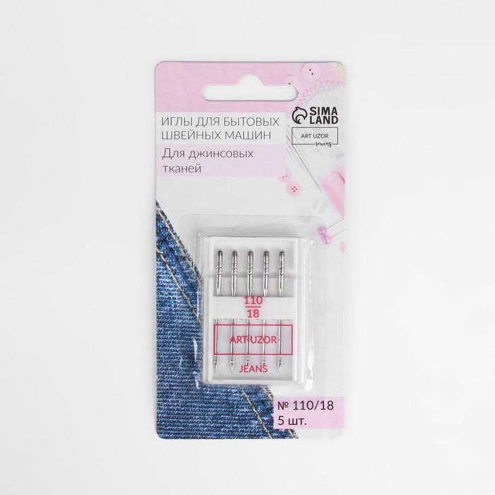 Иглы для бытовых швейных машин, для джинсовых тканей, №110/18, 5 шт.