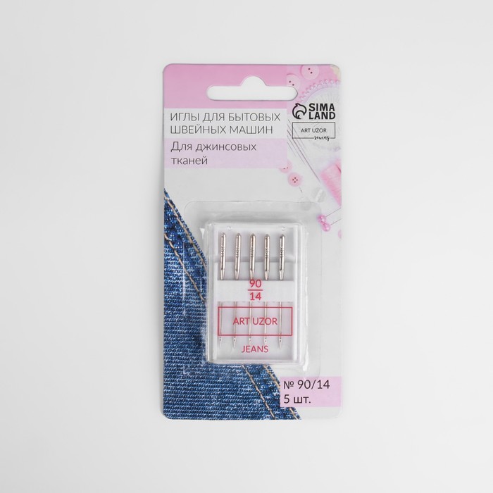 Иглы для бытовых швейных машин, для джинсовых тканей, №90/14, 5 шт.