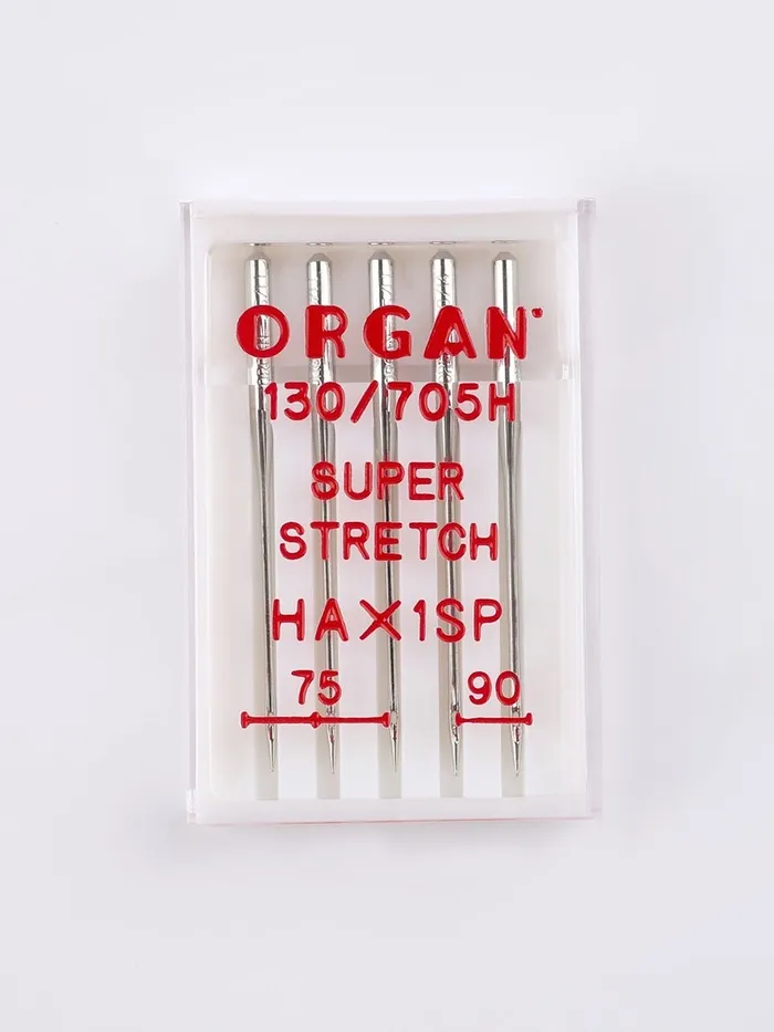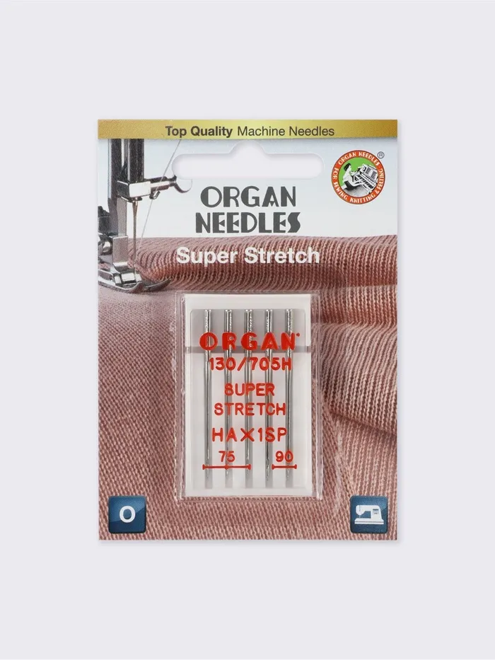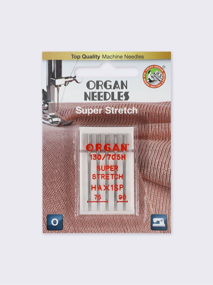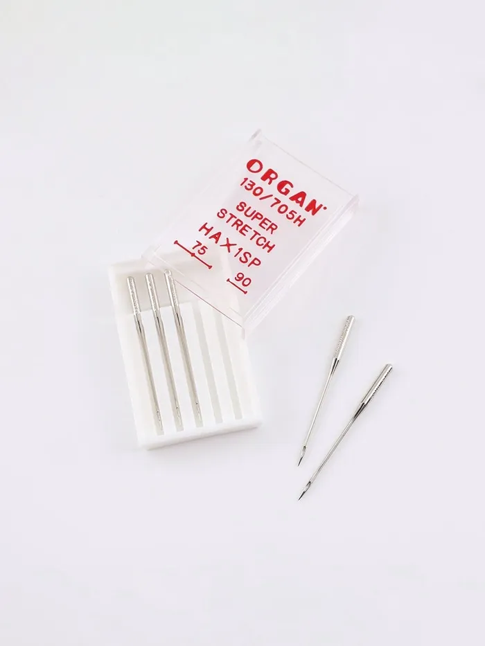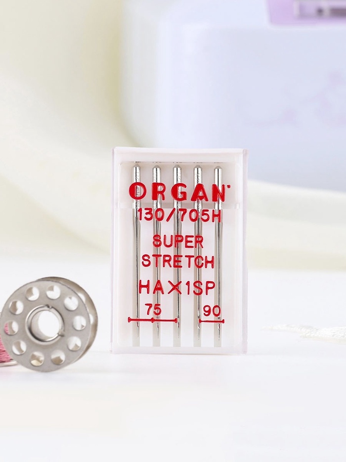 Качество швейной иглы важно так же, как механизм машинки. Иглы суперстрейч предназначены для работы с высокоэластичными материалами: трикотажем, спандексом и другими. Также они подходят для вышивки на машине. Лёгкое закругление острия отодвигает нити полотна и не спускает петли.