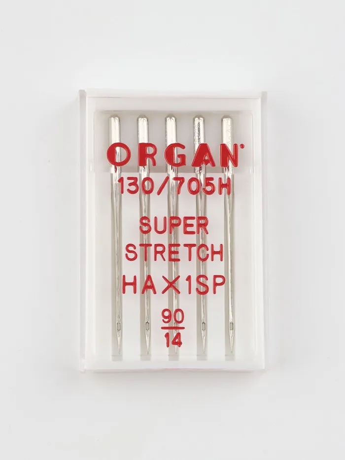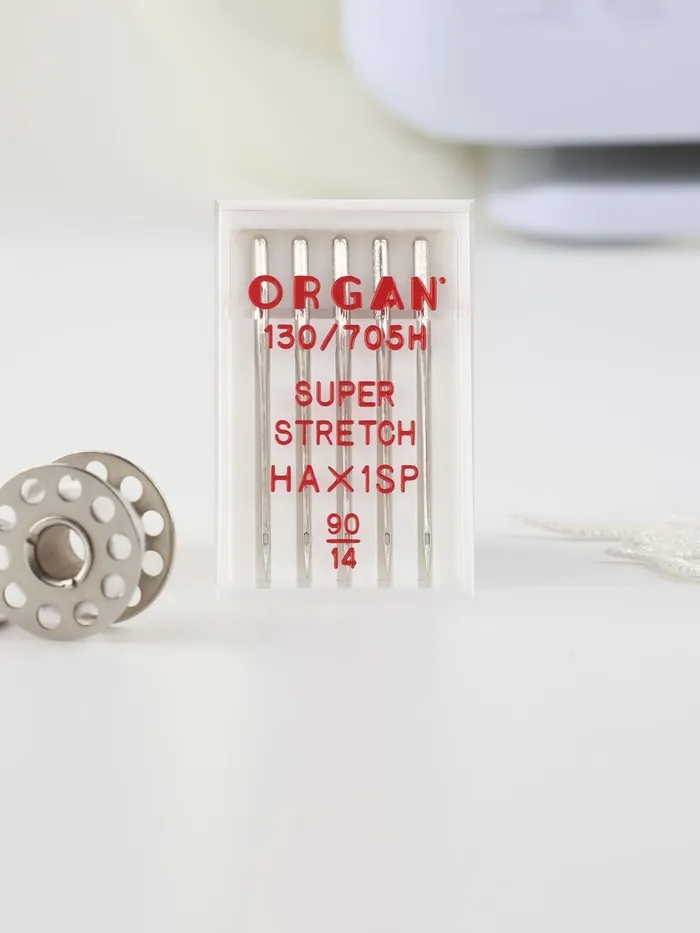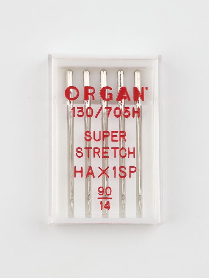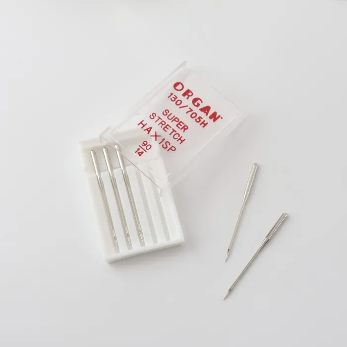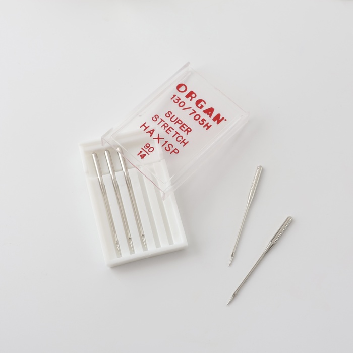 Качество швейной иглы важно так же, как механизм машинки. Иглы суперстрейч предназначены для работы с высокоэластичными материалами: трикотажем, спандексом и другими. Также они подходят для вышивки на машине. Лёгкое закругление острия отодвигает нити полотна и не спускает петли.