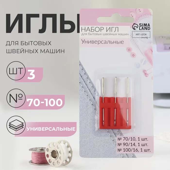 Иглы для бытовых швейных машин, универсальные, №70-100, 3 шт. — Характеристики