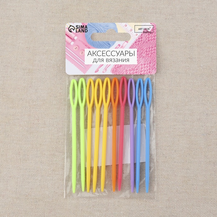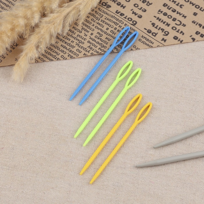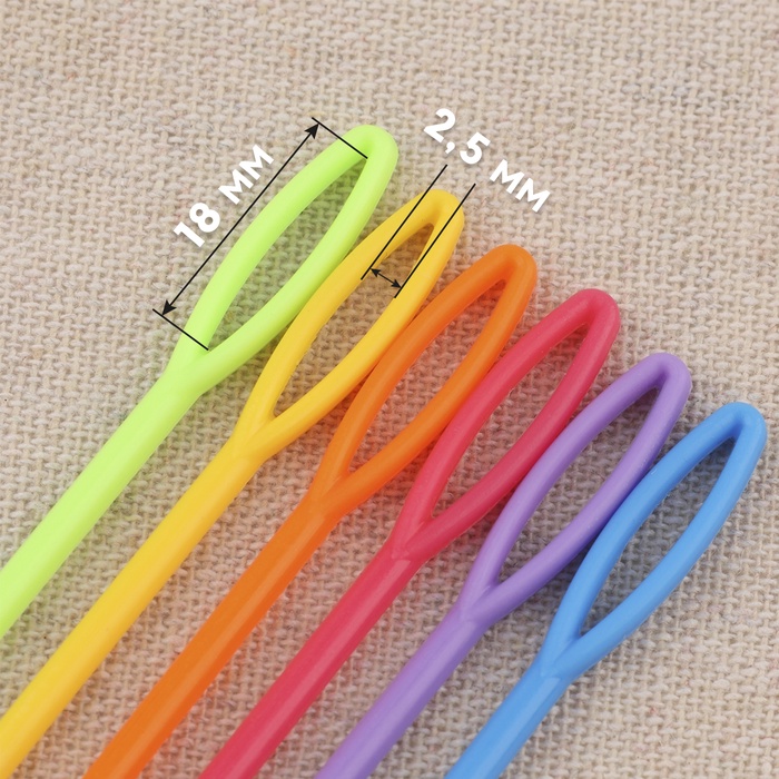 Иглы для сшивания пряжи и шерсти выполнены из пластика, благодаря этому материалу, иглы безопасны в использовании и легко заправляются в широкое ушко.