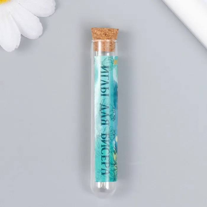 Иглы металл для бисера в стеклянной колбе тонкие набор 10 шт., d=0.45×55 мм, 1.2×1.2×7 см