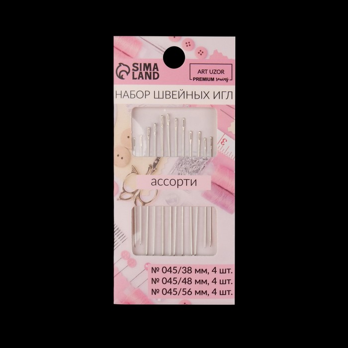 Иглы швейные «Ассорти», d=0.45 мм, 3.8/4.8/5.6 см, 12 шт.