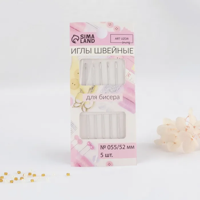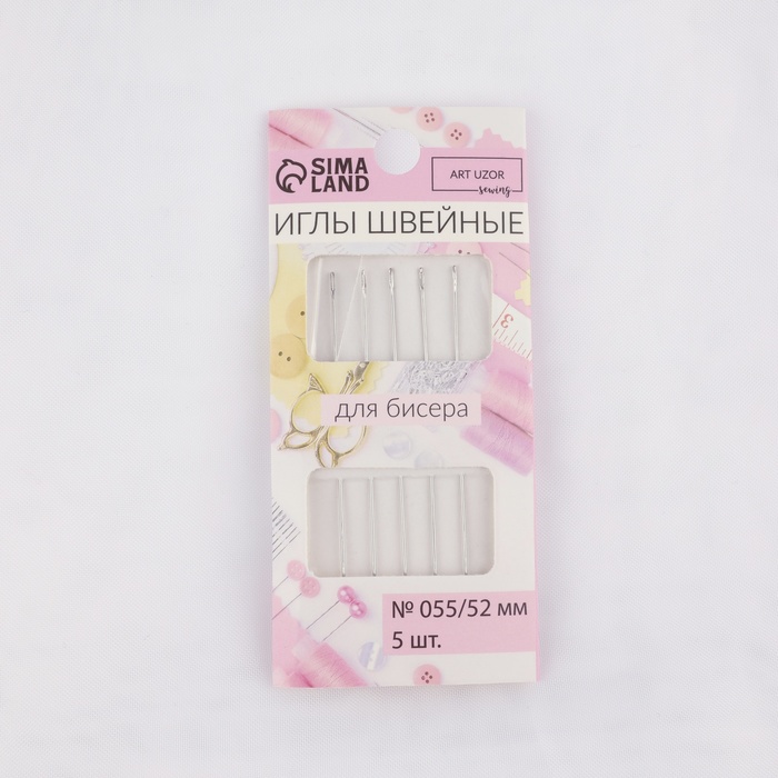 Иглы швейные для бисера, d=0.55 мм, 5.2 см, 5 шт.