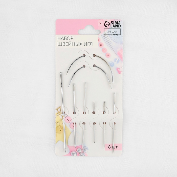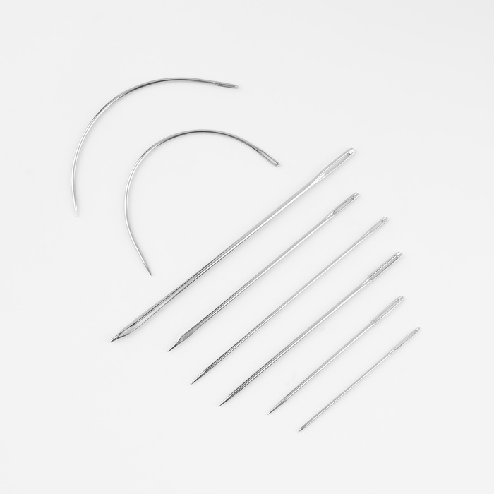 Иглы швейные, для кожи, 7.3/6.8/6.2/6/5.9/5.4/4.3/3.7 см, d=2/1/0.8/0.5 мм, 8 шт. — Характеристики