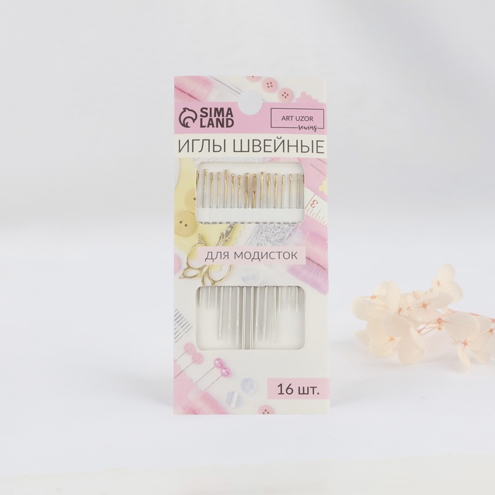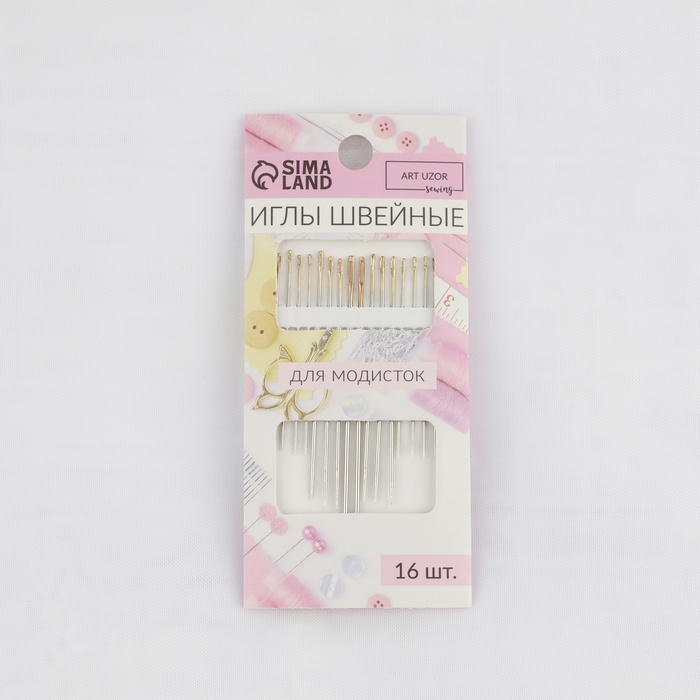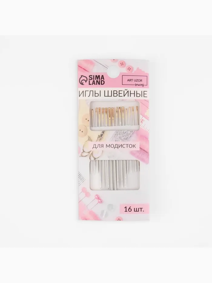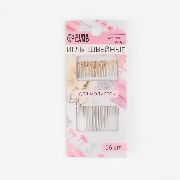 Иглы швейные для модисток, с золотым ушком, d=0.7-1.1 мм, 3.8-5.3 см, набор 16 шт. — Характеристики