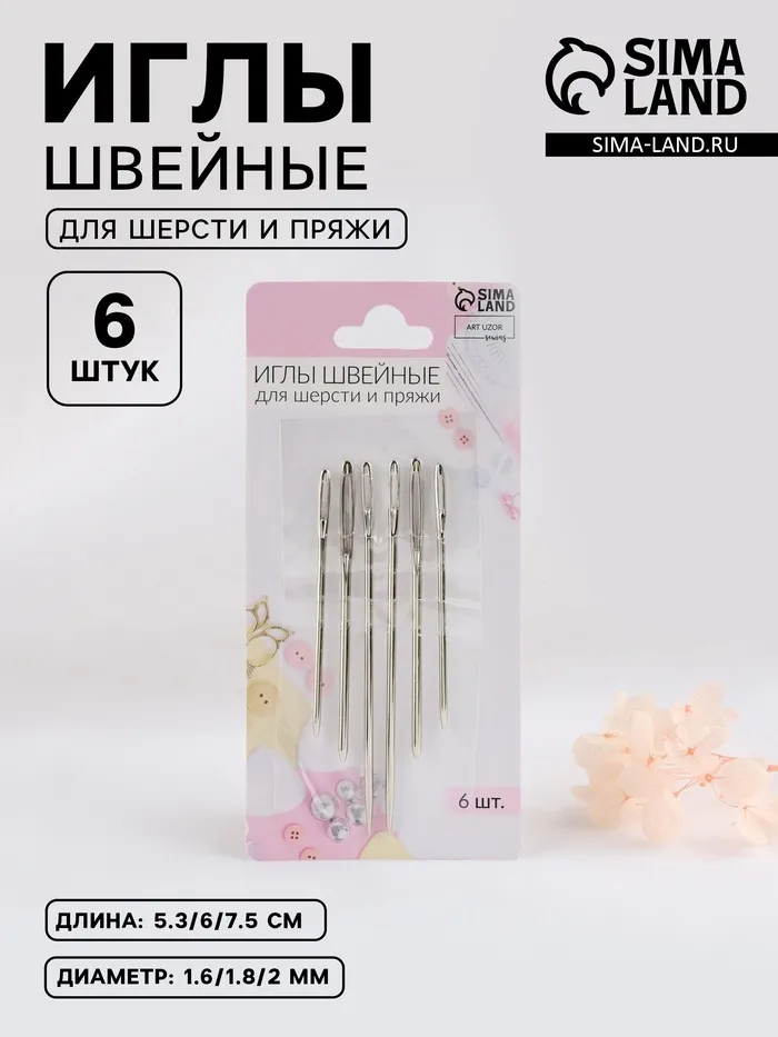 Иглы швейные для шерсти и пряжи, d=1.6/1.8/2 мм, 5.3/6/7.5 см, 6 шт. — Характеристики