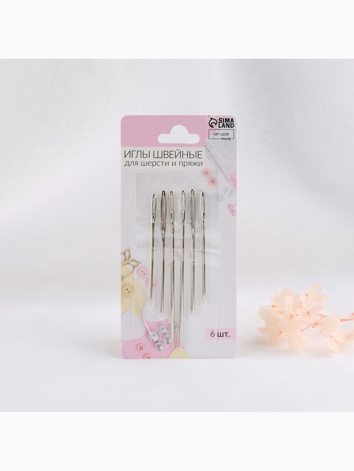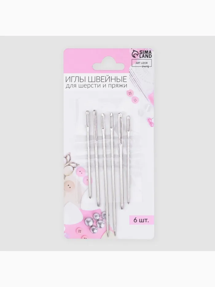 Иглы швейные для шерсти и пряжи, d=1.6/1.8/2 мм, 5.3/6/7.5 см, 6 шт.