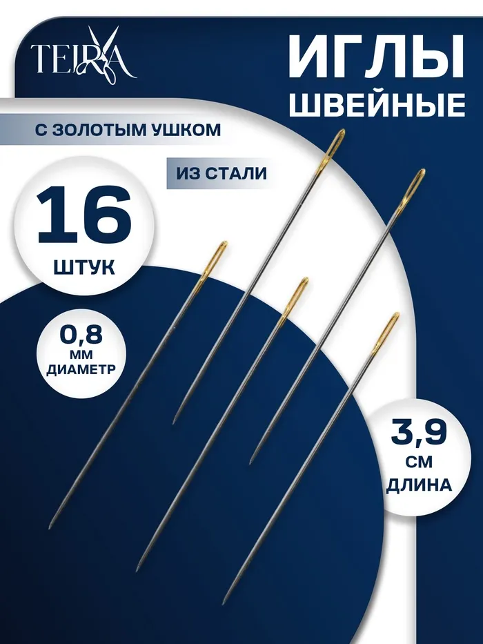 Иглы швейные с золотым ушком TEIRA, набор 16 шт., d=0.8 мм, 3.9 см — Характеристики