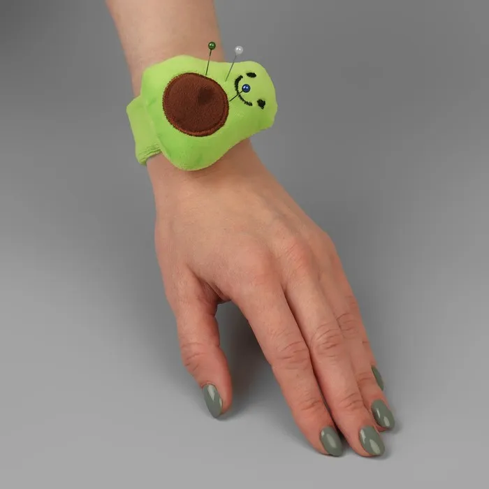 Милая игольница на браслете поможет собрать все иголки и булавки в одном месте — вам не придётся отвлекаться на поиски острых помощниц. Игольница хорошо фиксируется на руке и не сползает во время работы. Мягкий аксессуар в виде авокадо сэкономит ваше время и нервы и порадует очаровательным дизайном.