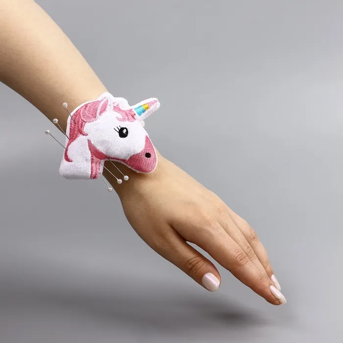Милая игольница на браслете поможет собрать все иголки и булавки в одном месте — вам не придётся отвлекаться на поиски острых помощниц. Игольница хорошо фиксируется на руке и не сползает во время работы. Мягкий аксессуар в виде единорожки сэкономит ваше время и нервы и порадует очаровательным дизайном.