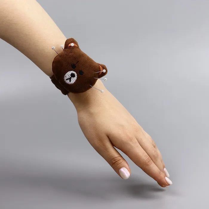 Милая игольница на браслете поможет собрать все иголки и булавки в одном месте — вам не придётся отвлекаться на поиски острых помощниц. Игольница хорошо фиксируется на руке и не сползает во время работы. Мягкий аксессуар в виде медвежонка сэкономит ваше время и нервы и порадует очаровательным дизайном.