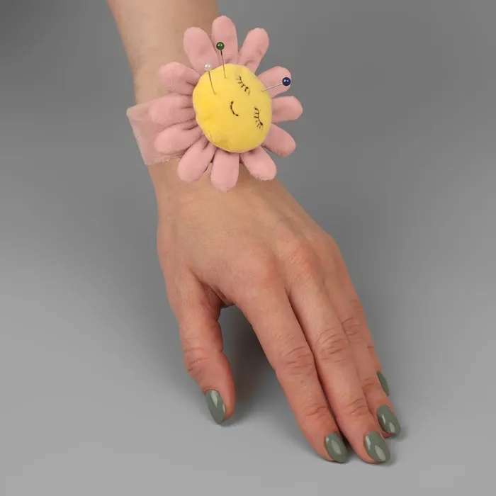 Милая игольница на браслете поможет собрать все иголки и булавки в одном месте — вам не придётся отвлекаться на поиски острых помощниц. Игольница хорошо фиксируется на руке и не сползает во время работы. Мягкий аксессуар в виде цветочка сэкономит ваше время и нервы и порадует очаровательным дизайном.