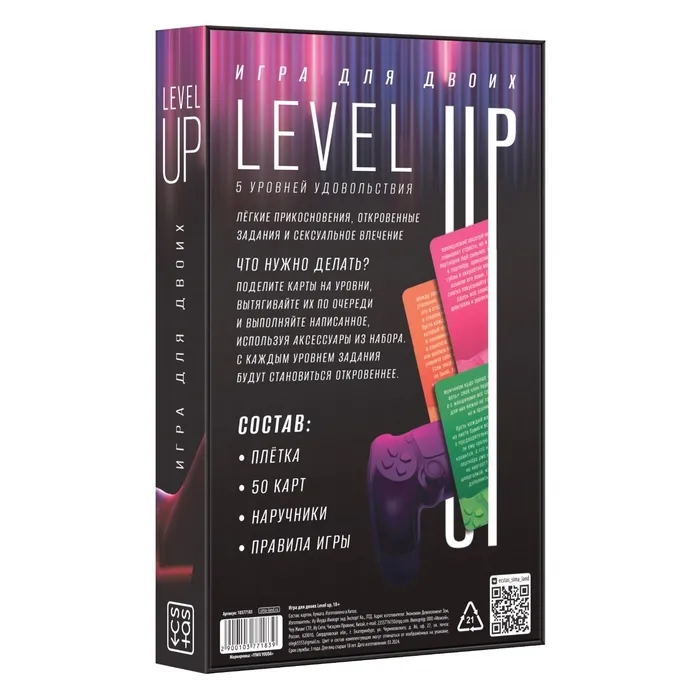 Игра для двоих Level up, 50 карт, плётка, наручники, 18+ — Характеристики