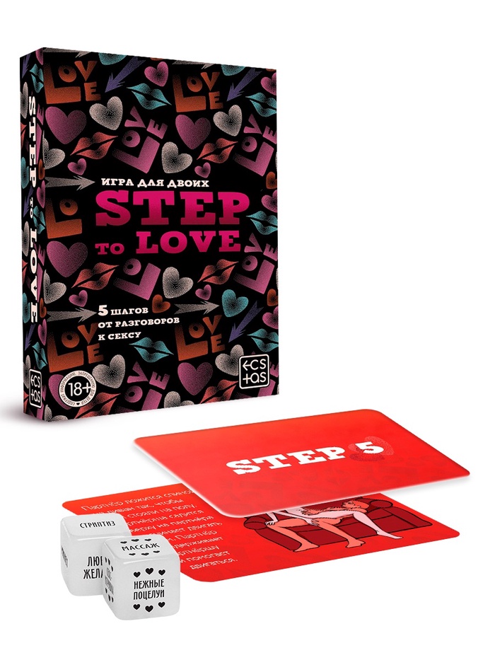 Игра для двоих «Step to Love» — это захватывающий набор, состоящий из 50 карт и двух кубиков, созданный для того, чтобы добавить в ваши отношения элемент игры и романтики.