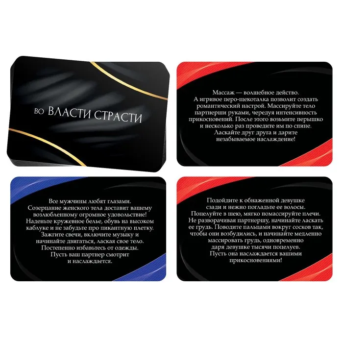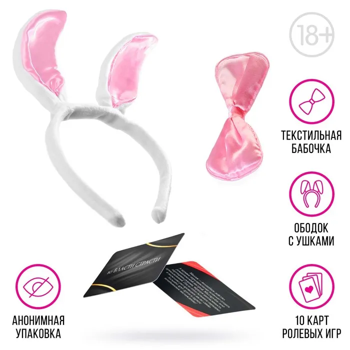 Этот набор позволит вам разнообразить сексуальную жизнь и добавить в неё немного перчинки. В наборе вас ждут карточки с эротическими заданиями для него и для неё. По очереди вытягивайте карточки, зачитывайте задания и выполняйте их. Помните, что все задания направлены на то, чтобы доставить удовольствие вам и вашему партнёру. Также в комплект входят ободок с заячьими ушками и бабочкой, которые можно использовать во время ролевых игр.