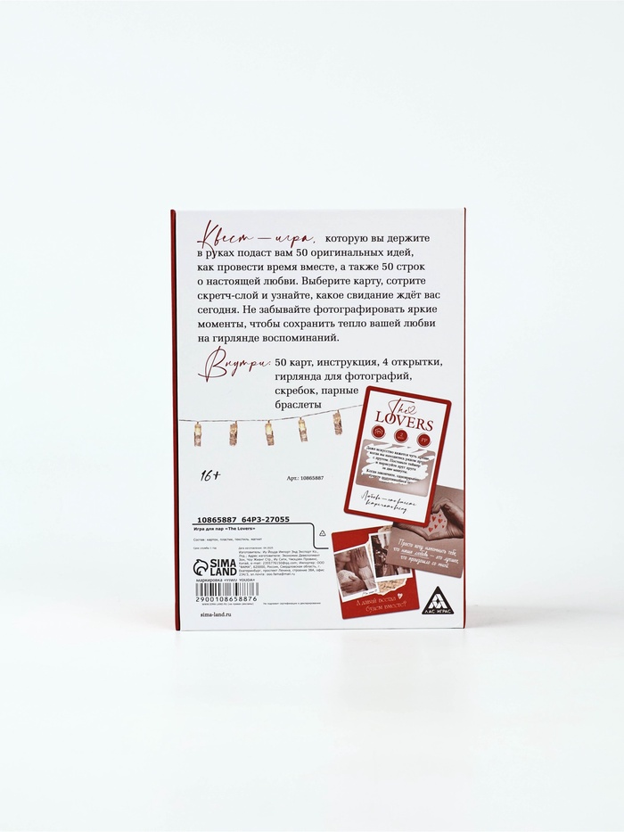 Игра для пар «The Lovers», 50 карт, гирлянда, парные браслеты, 16+ — Характеристики