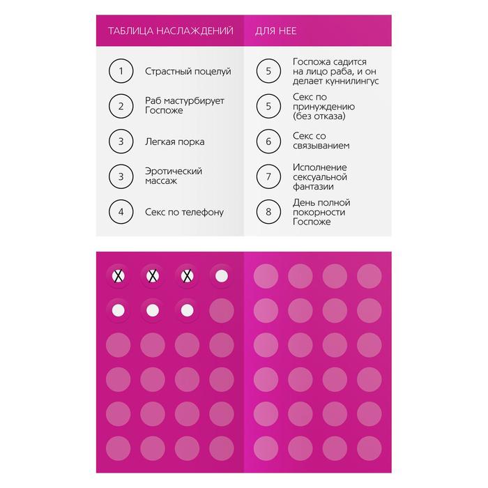 С этой игрой ваши домашние дела станут намного пикантнее. Вы сможете раскрыться с новой стороны и доставить друг другу невероятное удовольствие. Внутри вас ждут карты с откровенными заданиями и таблица наслаждений, которые доведут до экстаза. Подарите друг другу незабываемые воспоминания.