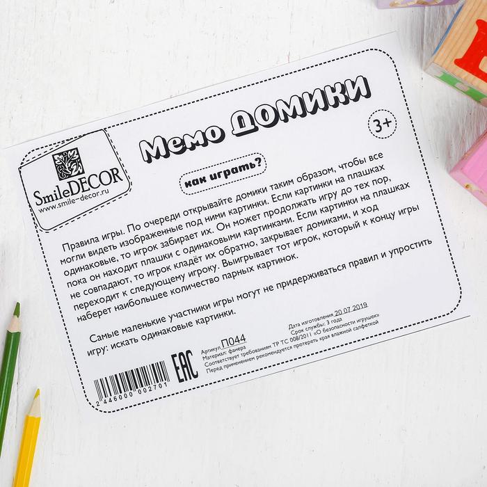 Игра для тренировки памяти «Мемо. Домики» размер окошек: 4 × 4,5 см — Характеристики