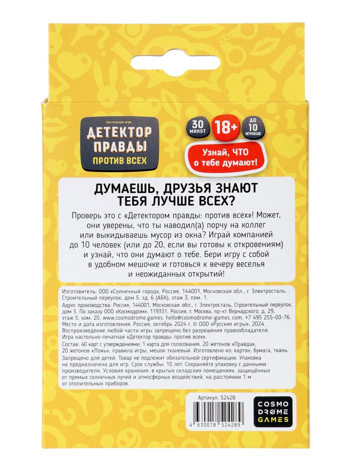 Игра для взрослых «Детектор правды. Один против всех» — Характеристики