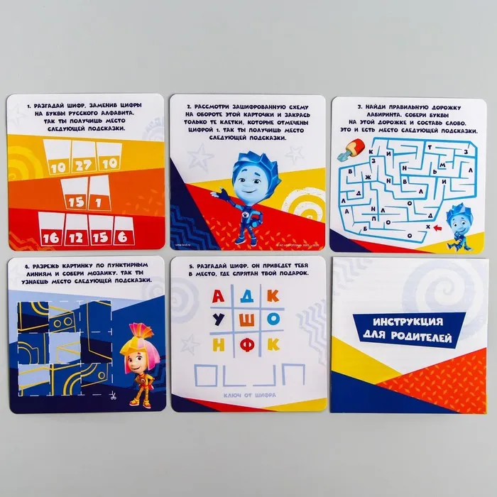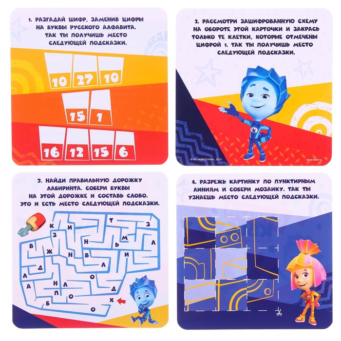 - Разложите карточки с заданиями по квартире в верном порядке.