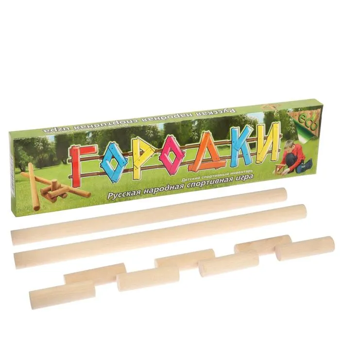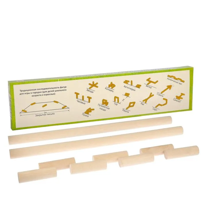 Игра «Городки», биты 2 шт. 49×2.5 см, городки 10 шт. 9×2.5 см — Характеристики