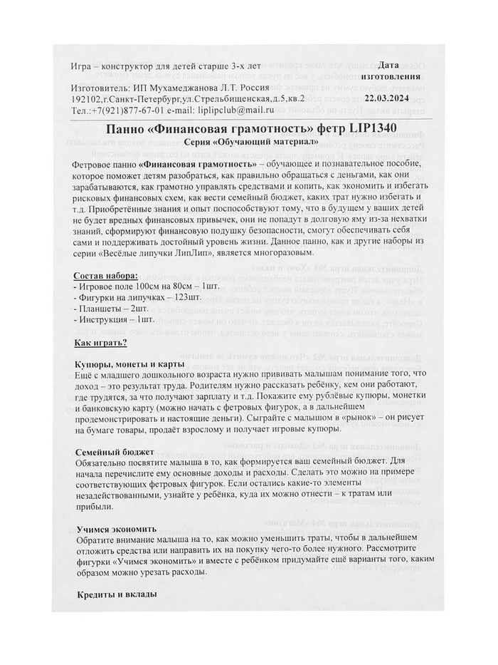 Игра-конструктор «Финансовая грамотность», 139 деталей — Характеристики