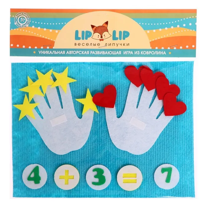 • Фигурки из фетра — 40 шт. (плюс, минус, равно, две ладошки, звёздочки, сердечки)